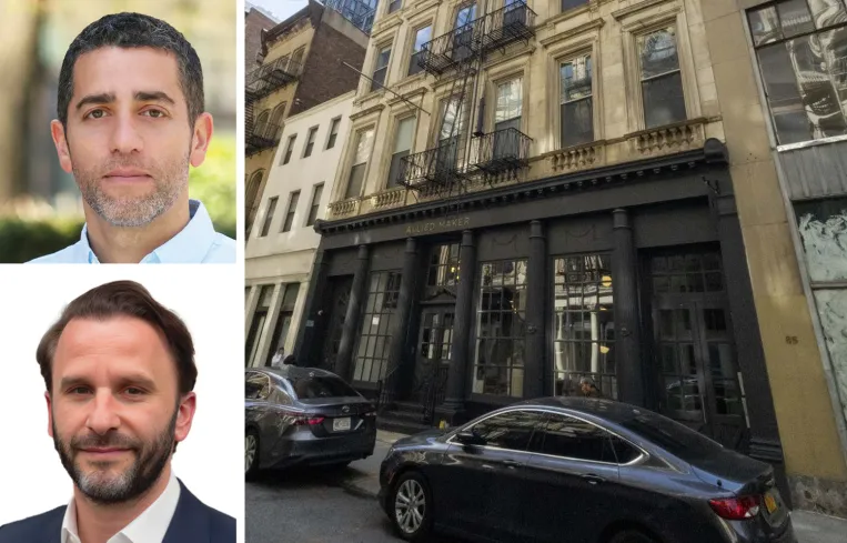 Slate Property Group's Martin Nussbaum (top), Avenue Realty Capital's Udi Kore (bottom), and 81 Franklin Street. PHOTOS: Courtesy Slate Property Group; Courtesy Avenue Realty Capital; Propertyshark
